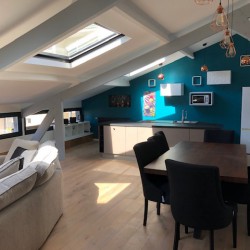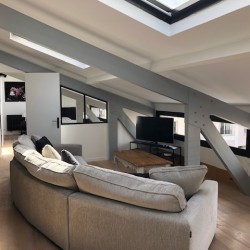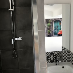 L’entrée est privée. Vous arrivez au niveau 0 où vous aurez un salle d’eau et 1 WC séparé. En montant au niveau 1 vous aurez une 1ère chambre avec un lit en 160X200. En arrivant au niveau 2 vous aurez une 2ème chambre avec une douche et un lavabo, et un lit en 160X200. Vous traverserez ensuite le grand salon et vous arriverez sur la 3ème chambre avec salle de bain ( baignoire et douche) attenante. Le lit est en 180X200. Le niveau principal est climatisé.